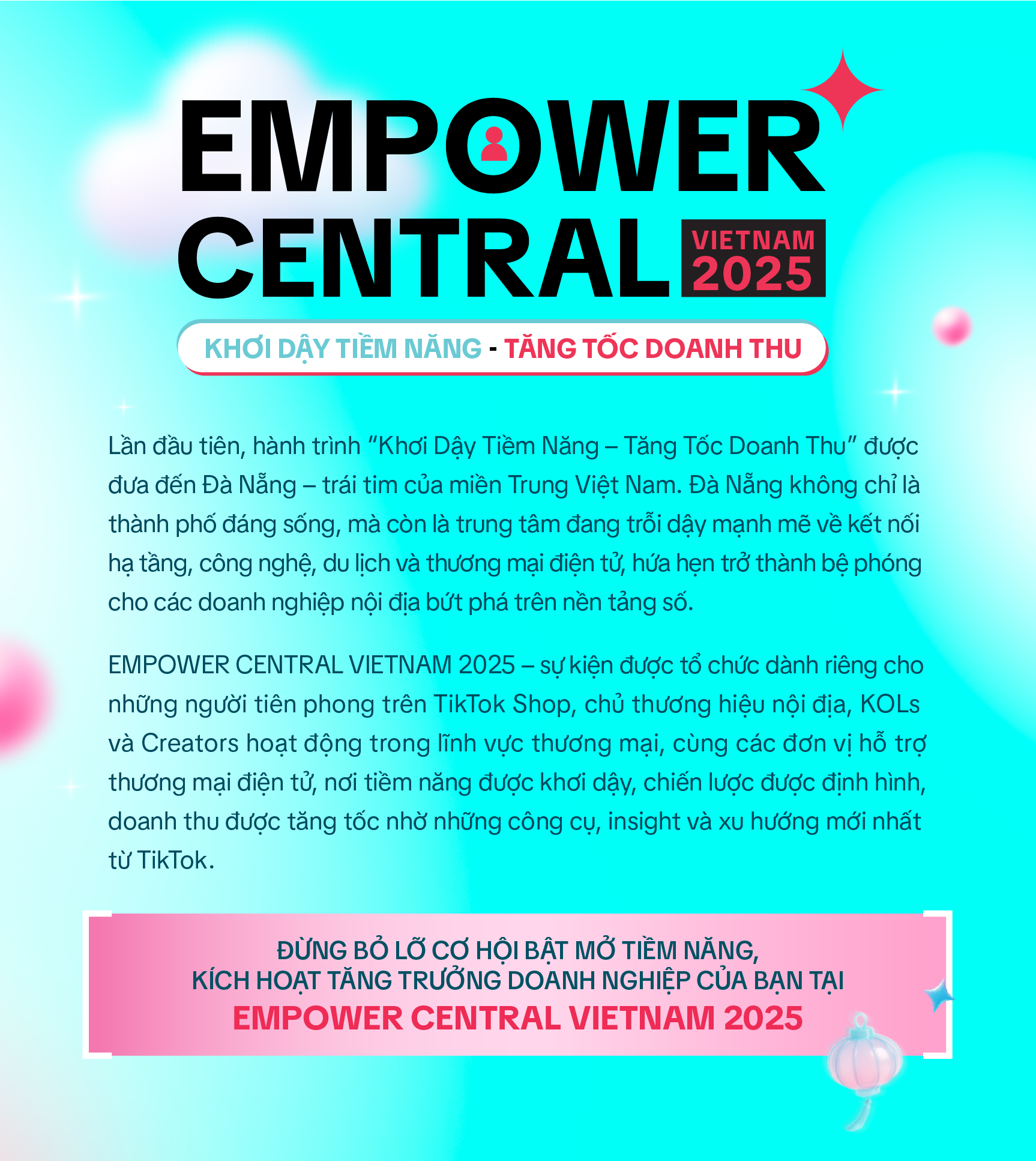 TikTok Empower Central was the first-ever TikTok Shop seller education and networking event in Central Vietnam, hosted in Đà Nẵng. The program was designed to equip local sellers with practical strategies, hands-on workshops, and inspiring success stories, helping them scale their businesses on the platform.